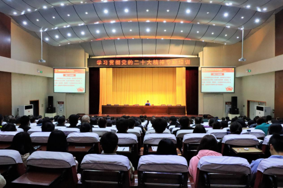 4月3日下午,yl23411永利(集团)有限公司官网学习贯彻党的二十大精神和全国两会精神专题培训第二讲在南校区报告厅举行。此次培训邀请到中国共产党第二十次全国代表大会代表、河南平原光电有限公司梁兵大师为师生作报告,校党委书记汪诗怀出席,全体副科级以上干部、部分学生入党积极分子300余人参加报告会。会议由党委委员、副校长秦海金主持。