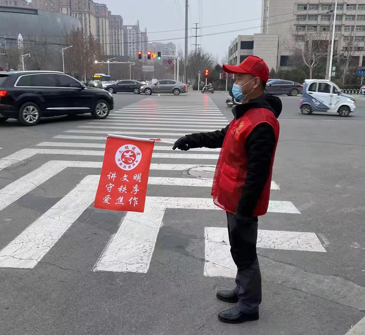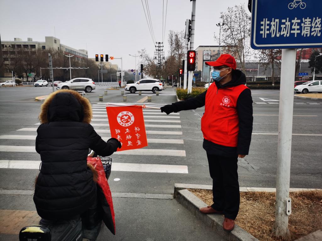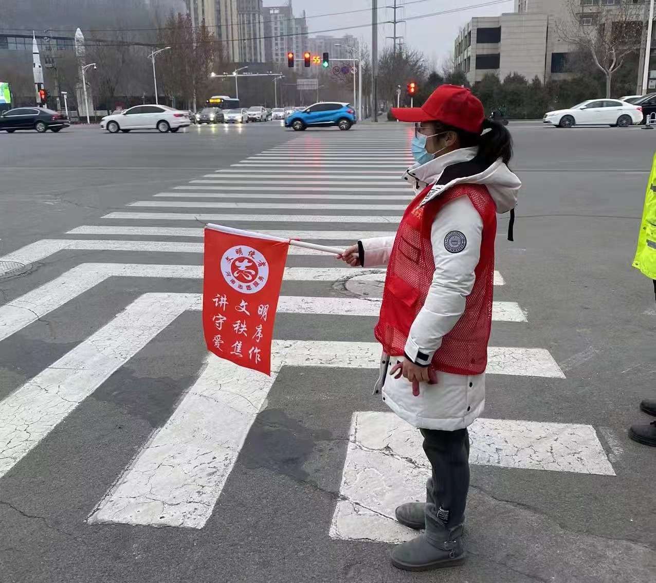 此次志愿服务活动针对丰收路长恩路口、人民路山阳路口等四个交通路口进行文明交通劝导。活动中教师志愿者们利用手中的小红旗,在早晚高峰准时上岗,宣传交通法规、维护交通秩序,对行人乱闯红灯、不走人行横道、占道行驶、骑电动车不佩戴安全头盔等不文明交通行为进行规劝。