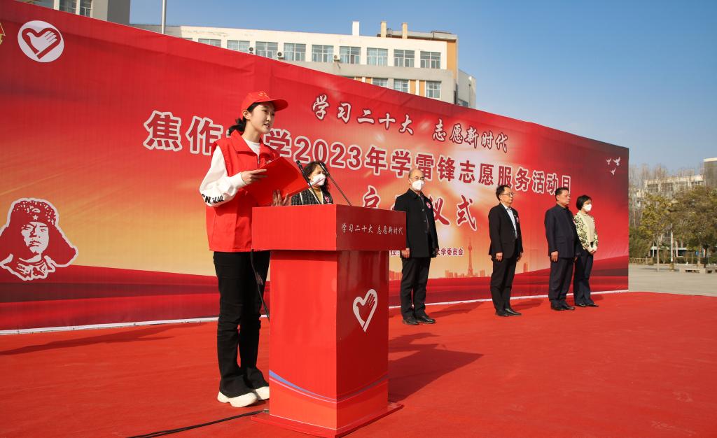 启动仪式上,志愿者代表郁涵硕向全校青年志愿者发出了“向雷锋同志学习,从小事做起,从今天做起,人人学雷锋,处处学雷锋”的热情倡议。