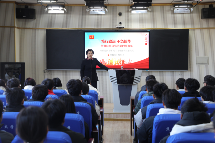 策马扬鞭正当时,矢志笃行立芳华。为全面贯彻党的二十大和二十届二中、三中全会精神,深入学习贯彻习近平总书记关于新时代学校思政课建设的重要讲话和重要指示批示精神,全面贯彻党的教育方针,扎实推进思政教育工作,持续落实立德树人根本任务,12月5日,市政协副主席、校长霍晓丽教授为土木建筑工程学院师生讲授了一堂有高度、有温度、有情怀的思政课,为学生和教师成长成才打好人生底色。