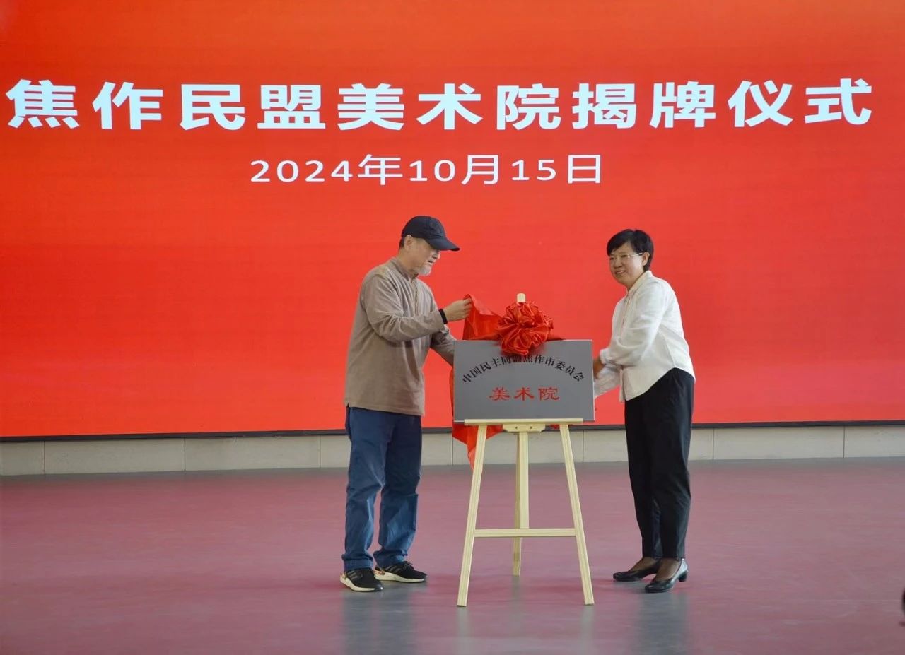 霍晓丽主委与李健强院长共同为民盟焦作市委会美术院揭牌。